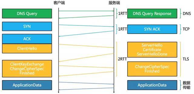 综上所述DNSTLSTCP 握手阶段用了 4 个 RTT 才到了 ApplicationData 阶段也即是数据发端传输阶段。