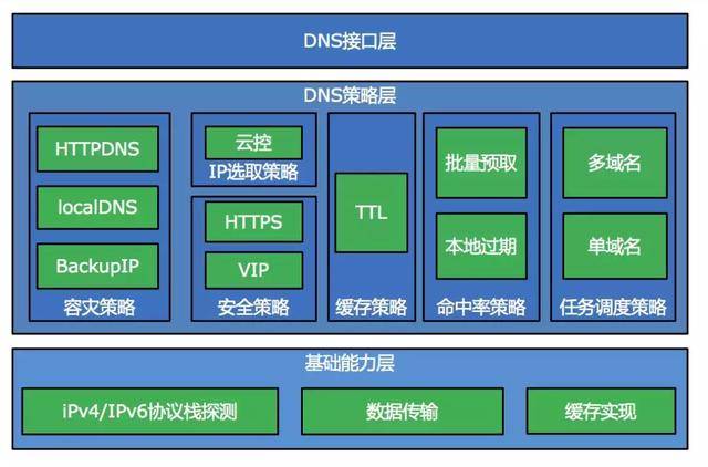 前提本领层重要供给给 DNS 战术层所须要的前提本领包括 IPv4/IPv6 协议栈探测的本领数据传输的本领缓存实行的本领底下将道授每种本领的简直实行