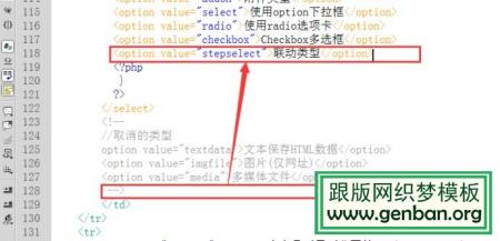 2.要修改的第二个文件:dede/templets/diy_field_add.htm 约。 146 行显然已标出我们删除了评论